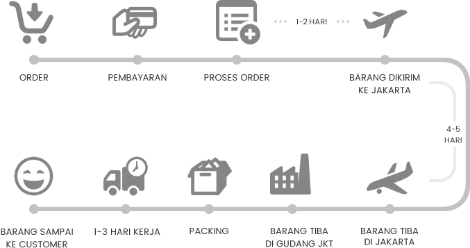 Semua harga Pre-Order yang tertera di website ini sudah termasuk biaya import dari negara importir ke Indonesia. Pesanan Anda akan siap dikirim dari Jakarta setelah 5-7 hari kerja (diluar Sabtu/Minggu/Tgl Merah) sejak pembayaran kami terima.